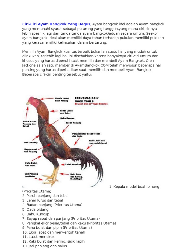 Ayam Bangkok 8 Ciri Fisik Ayam Bangkok Kualitas Juara